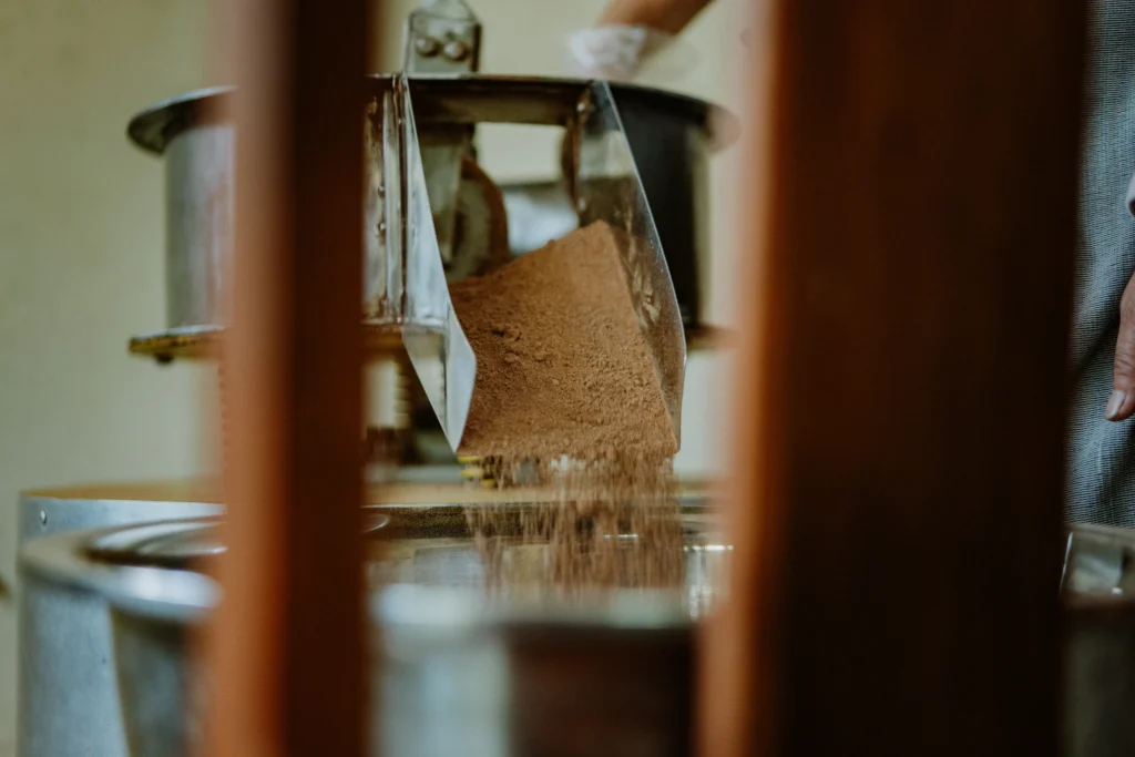 Belajar proses membuat bubuk kakao dari cokelat fermentasi, menyangrai, menggiling, pengepresan, dan mengayak jadi bubuk kakao